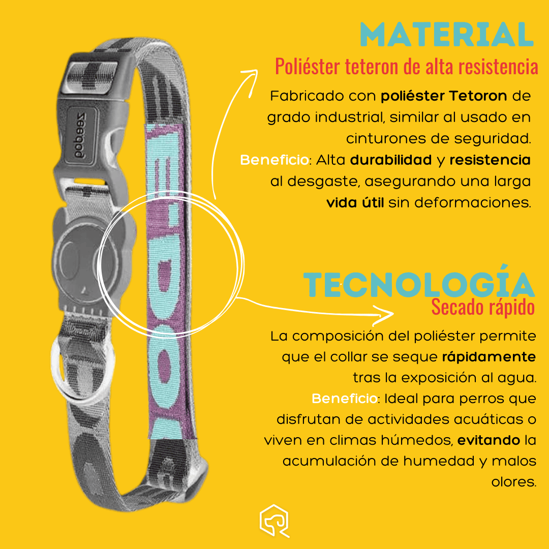 Fabricado con poliéster ultra resistente y de tacto suave, ofrece una sensación cómoda sin comprometer la durabilidad. Además, su cierre de seguridad de 4 puntos asegura máxima protección para que tu perro camine con total confianza.
