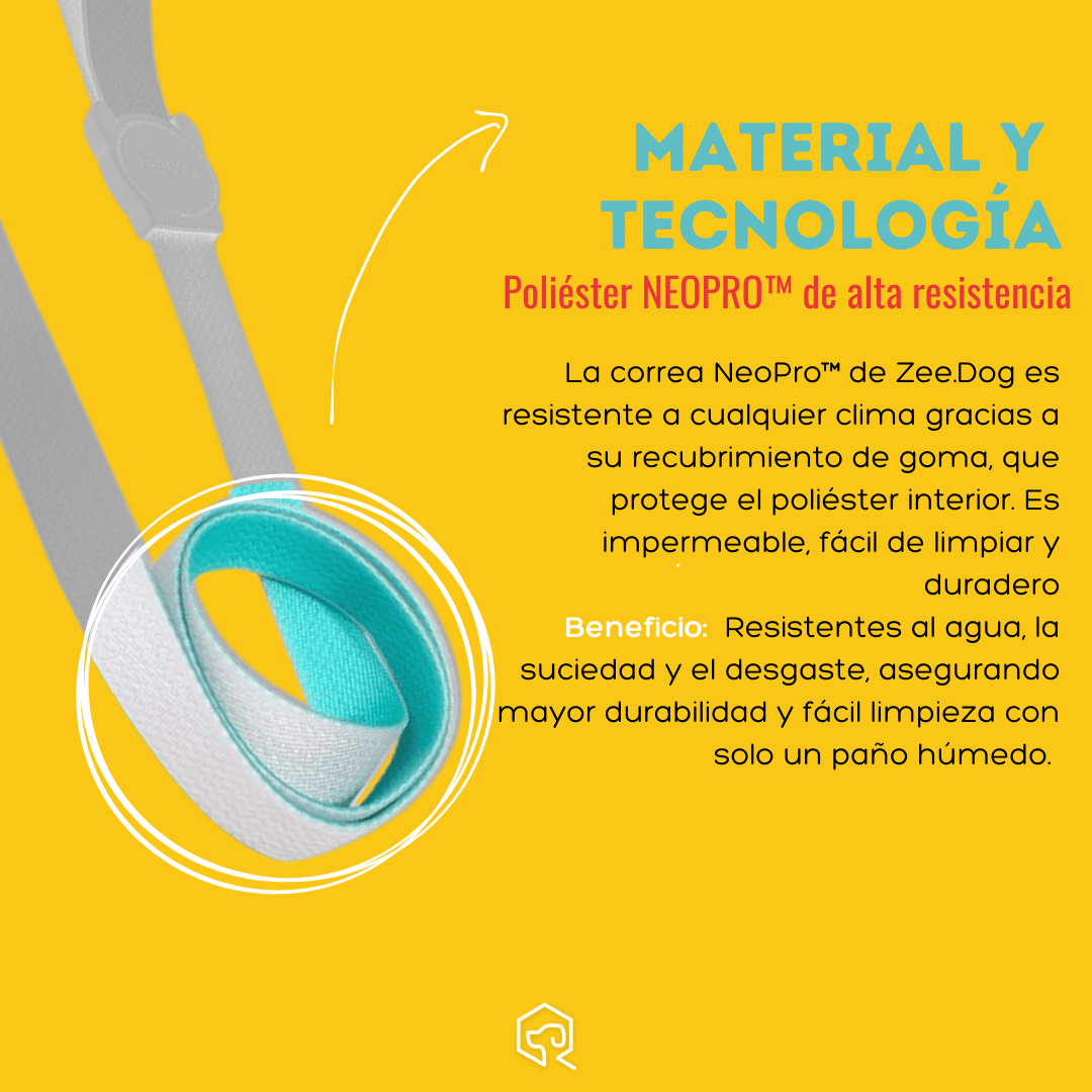 La correa Neopro™ Tidal es nuestra correa para perros resistente a cualquier clima y forma parte de la colección Neopro Bold. La capa exterior de goma Neopro™ protege el poliéster interno, haciéndola extremadamente resistente a las inclemencias del tiempo y muy fácil de limpiar y mantener. Está hecha de poliéster teterón suave y duradero, lo que la hace resistente y cómoda para sujetar. El Super Hook™ es fácil de abrir y cerrar, e incluye un cierre de rosca para mayor seguridad durante los paseos. Además, el logo de goma protege las costuras, brindando mayor durabilidad.