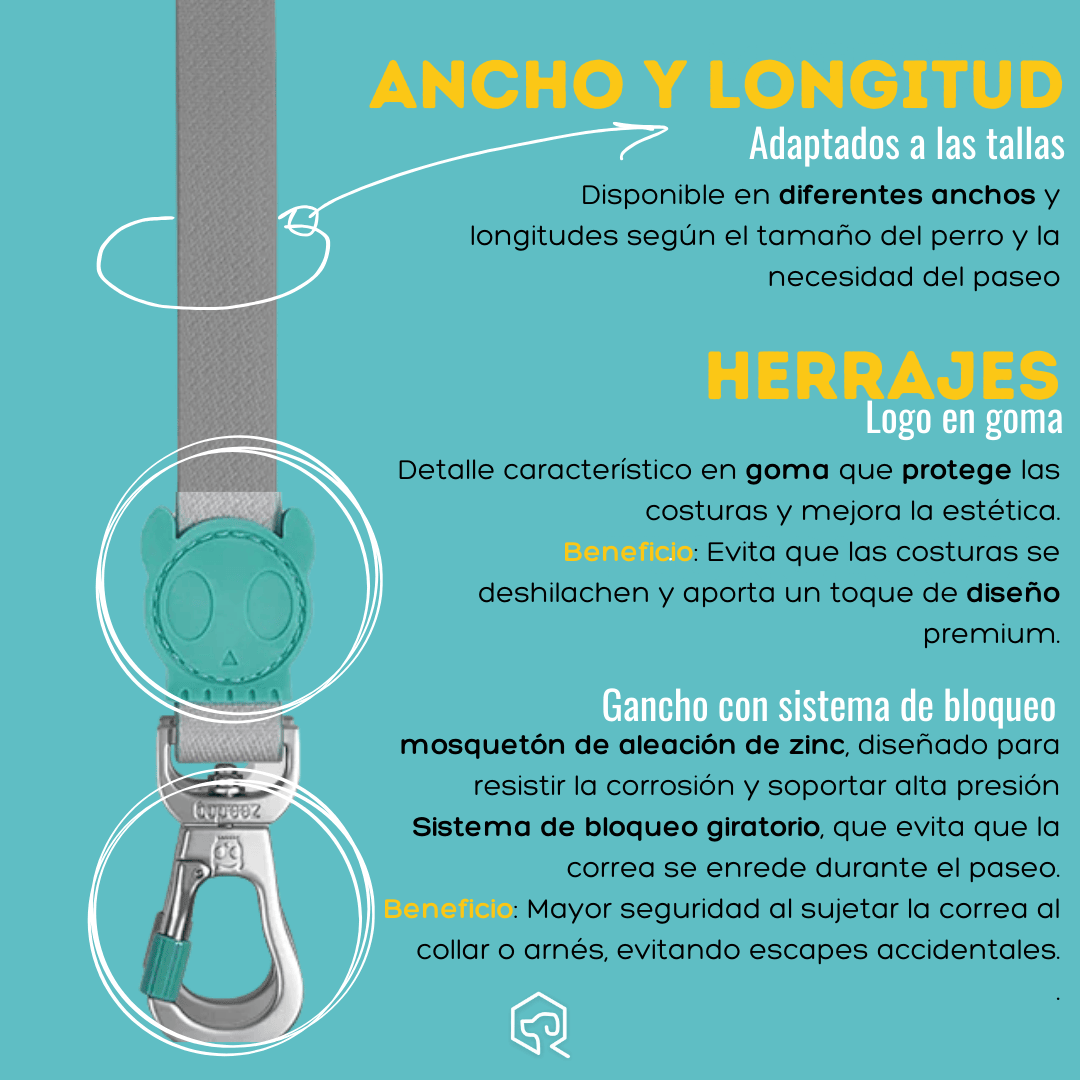 - Correa para perro fabricada con poliéster teterón suave y duradero.
